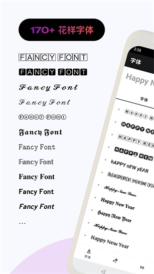 花样文字免费版是个给用户们带来各种好看花体字的app,那么想要你的手机看起来更加与众不同!不如更换一个字体看看效果吧啊,在这里你可以自己设计一个喜欢的字体,或者是找到其他用户们上传的花体字,直接通过预览的方式观看效果,合适就在下载,然后一键式的设定让我们使用起来也比较的方便,完全就是傻瓜式的操作不会有任何繁琐的流程,它软件平台还有各种字体的文案等着你去适用,直接复制在你的剪贴板上面不管你想使用到什么地方都可以噢,各种字体的分类规划的很清楚,所以当你查找起来的时候会发现,还有那么多好看的样式等着你去尝试,软件中也没有任何广告的植入真的是超级棒,所以需要这款软件的小伙伴们,快点下载使用起来看看吧啊。