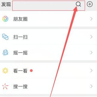 再登录微信,点击发现进入界面,然后在顶端搜索框框输入【一键去水印】。