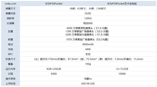 华为P50Pocket艺术定制版和华为P50Pocket的参数