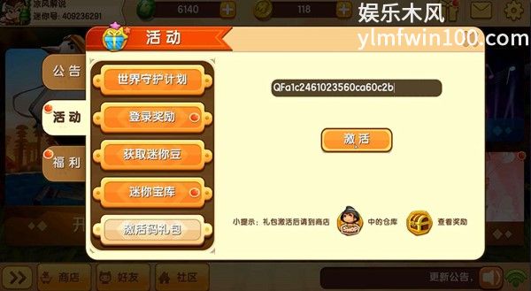 4.接着我们会在左侧的位置看到“活动”字样点击进去,就可以看到“激活码礼包”;