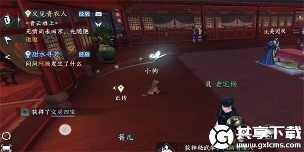 1、玩家需要前往汴京(1131,907)这个位置找到香兰进行对话解锁任务,对话结束玩家可获得奖励文房四宝。