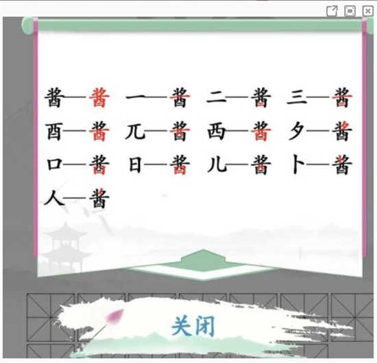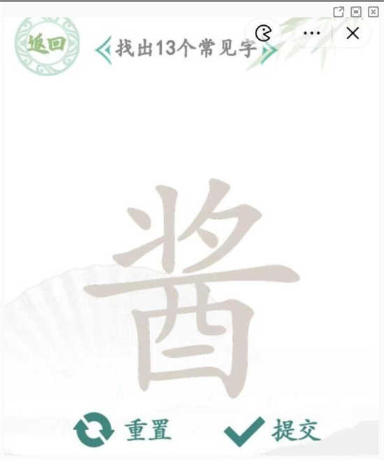汉字找茬王酱找出13个字怎么通关?汉字找茬王是一款非常轻松有趣的休闲解谜冒险类型的游戏,玩家可以在游戏当中不断地挑战各种有趣的谜题解答,非常让人爆笑无比同时又十分地烧脑,目前在游戏圈子内十分地火爆。游戏主要是以文字的形式进行展现,结合了各种网络热梗以及成语故事等等内容进行设计出不同的玩法内容,玩家在游玩的时候既锻炼了自己的观察能力,同时也能提升汉字识别能力。酱找出13个字属于一个找字类型的主题关卡,需要玩家根据要求在图片当中找出13个字才能通关,那么具体的答案是什么呢?下面分享一下具体的答案。