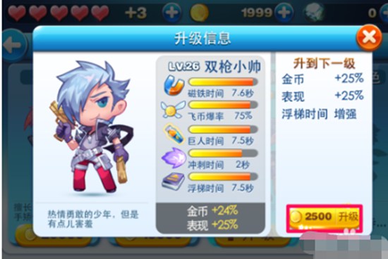 点击【升级】按钮来到升级相关信息的页面,点击升级即可。但是需要自己的金币够升级的数量。