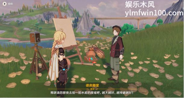 2、对话之后,我们能够得知完成委托需要拍摄水底废墟。