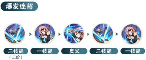 1.一技能起手,将对手带到墙角后,普攻循环5A持续连击等待技能CD,一技能CD转好后释放组合技,随后释放奥义进行爆发。奥义结束后接二技能持续攻击。