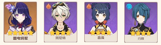 雷电将军+班尼特+香菱+行秋