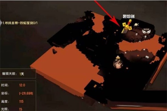 2、然后在烈焰星玩家先到如图坐标位置即可在小地图开始看到烈焰剑图标。