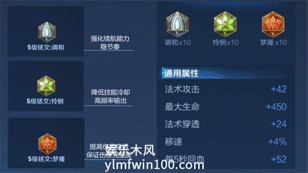 因此铭文方面,建议选择10个怜悯(强化开局时技能刷新频率,使前期节奏更快),10个梦魇(保证伤害完整性),10个调和或者5个调和加5个狩猎(配合被动强化貂蝉的续航能力)。