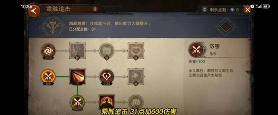 1、乘胜追击31点可以为我们增加600伤害。