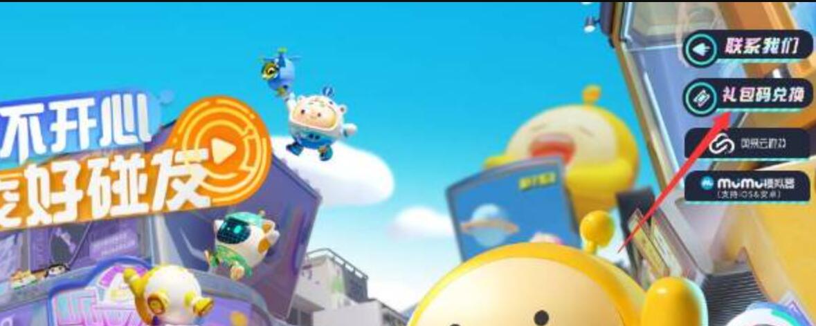 1、首先进入蛋仔派对官网后在界面右上角看到箭头所示的礼包码兑换,点击进入。
