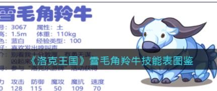 洛克王国雪毛角羚牛技能表图鉴洛克王国这个游戏中一直都有很多类型的宠物,而且作为游戏中的一大特色存在,因为这里的宠物的形象都非常的可爱以及有很多的形象的特征,有些可能是拟人的状态,有些则是动物的状态,但是游戏中的宠物是可以进化的,所以形态有些时候也会随着进化升级而发生改变,,还是非常有特色的一个点。这个游戏最近上线了一个新的活动枫雪镇,带来了枫雪镇系列的宠物雪毛角羚牛,作为一个新宠大家肯定是想知道这个宠物的实用性以及技能怎么样的吧,下面小编就带来了洛克王国雪毛角羚牛技能表图鉴,快来看看。