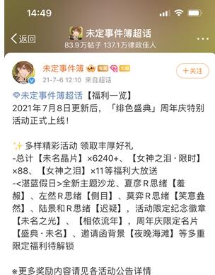 3、22年的周年庆是在7月14日,还分为好几个阶段。