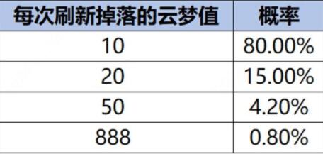 3、云梦值:每次成功刷新奖励时,会获得云梦值(10,20,50或888)。积累云梦值可以提高云梦值等级,最高4级。