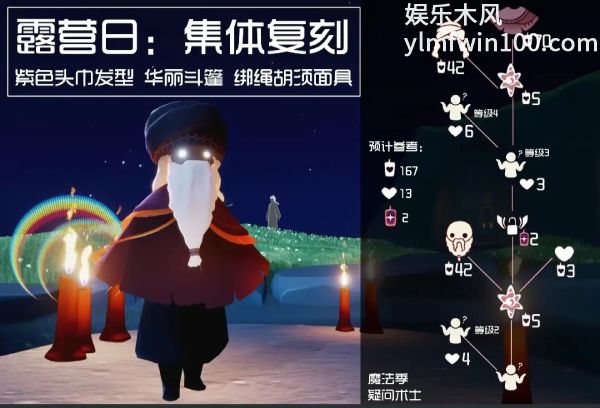 兑换物品:紫色头巾发型、华丽斗篷、绑绳胡须面具。