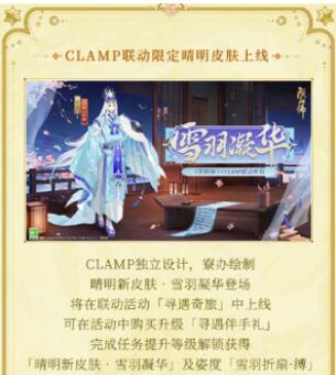 CLAMP独立设计,寮办绘制晴明新皮肤·雪羽凝华登场将在联动活动「寻遇奇旅」中上线
