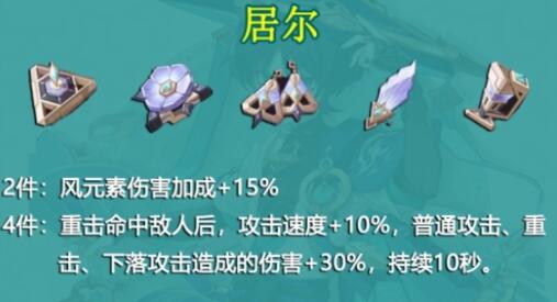 这个圣遗物套装,2件套增加的是风属性伤害,4件套是重击击中敌人后,加10%的攻速,而且普攻,重击和下落攻击的伤害都加30%。