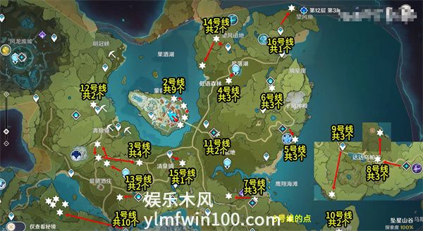 3:其他材料蒲公英籽可以在地图上进行采集,按照下图的路线进行采集是最快的。
