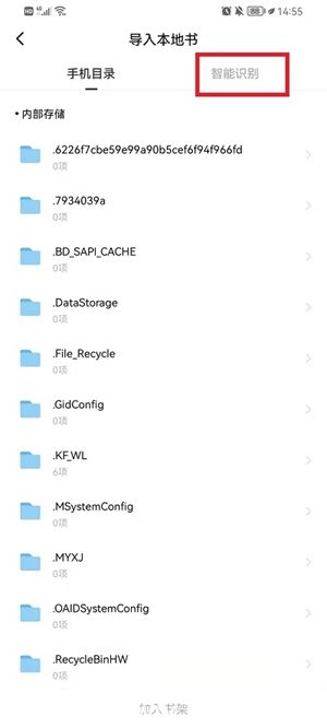 4、入到手机文件夹界面后,用户需要找到自己下载的小说,也可以使用智能识别,去识别出TXT文件。