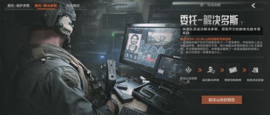 若选择解决多斯,先锋们选择特遣队员身份进入到山谷封锁区,即可参加活动。特遣队员需要根据大地图标记与播报提示定位多斯的实时位置,找到并解决多斯。行动期间,博雷罗会有概率出现并协助安保人员,保护多斯撤离。