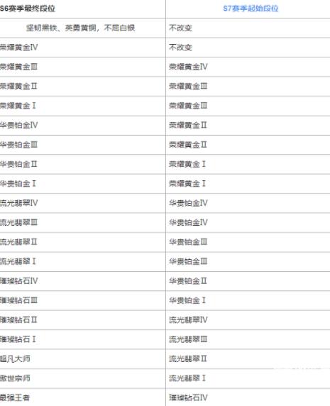 英雄联盟手游s7赛季段位继承表