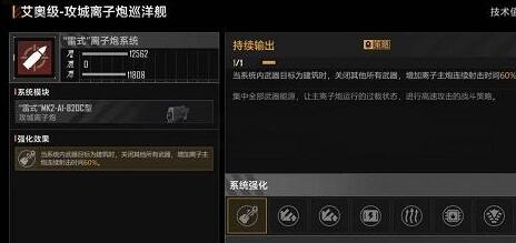 2.攻城型艾奥级,相比于对舰型极大地加强了舰船的攻城能力,面板上来看降低了2000的DPM,增加了足足有8000点的攻城伤害,并且主武器在攻击建筑时可以提高60%连续射击时间。