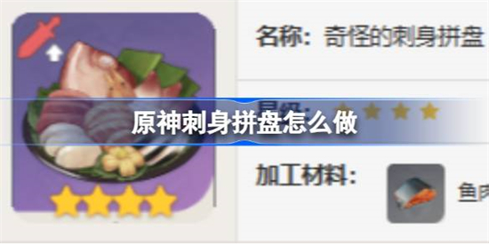 原神刺身拼盘怎么做?在原神手游中,我们的玩家们可以通过收集不同的材料对角色和武器进行突破,也可以获取更多的食材去制作更多食物,除了可以体验独特的制作玩法之外,更是可以给不同的角色提升生命值和属性效果,每一个食物的作用不一样,大家都可以去制作,并且感受一下独特效果。今天小编要给大家介绍的食物非常值得一学,它就是很多玩家还不会的刺身拼盘,刺身拼盘所需要的材料并不少,而且不同星级的刺身拼盘可以带来更多额外效果,那么接下来我们一起看看三个不同星级的刺身拼盘制作攻略叭~绝对不会让你空手而归。