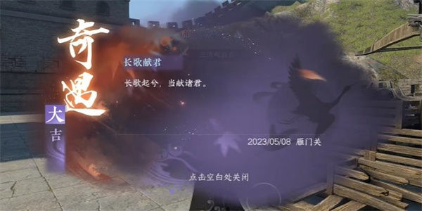 1. 首先,根据传闻的线索,我们前往雁门关瓮城,探寻长歌献君奇遇任务的真相。