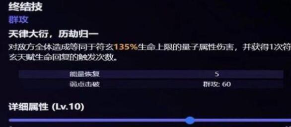 天赋:符玄在场时,全体都可以获得减伤效果,同时,符玄血量低于一定值时,还可以触发自身回血,提高了自身的生存能力。