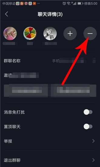 4.点击群成员后面的“-”,删除群聊成员。
