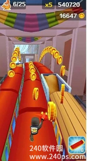 6、当你在3条火车轨道上接金币时,最后一辆火车速度是最快的。