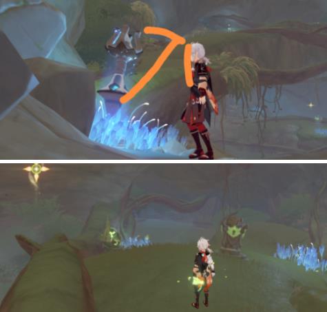 3、 来到地方后,往右边看,就会看到一个斜坡,往上走,就会看见一个死域核,然后把它击破,就可以解开了。
