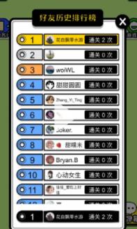 3、在好友历史排行榜当中可以查看到当前好友的名次以及通关的次数,每日排行榜都会刷新重置;