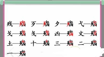 1、脑找出13个字包括:残、歹、夕、戈、弋、戋、凶、文、土、十、三、二、一