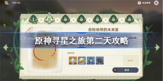 原神寻星之旅第二天怎么玩?原神很好玩的动作冒险类游戏,全新的冒险体验,多样的玩法,还有各种精彩刺激的对决,给玩家带来很多的全新体验,在这里玩家可以自由战斗,完成游戏的各种任务,解锁很多精彩剧情,游戏的剧情内容都是非常精彩好看的,完成这些剧情任务还可以获取丰厚的奖励,帮助玩家提升更多的战斗实力,游戏有着很多的角色可以获取,这些角色会有各种战斗能力,可以很好的帮助玩家完成各种任务挑战,最近游戏新出的活动寻星之旅,很多玩家对这个活动的第二天玩法不是很了解,不知道怎么玩,小编这里有寻星之旅第二天的玩法攻略,不知道怎么玩的小伙伴可以看看。
