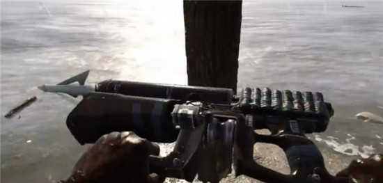 2、玩家拿到绳索枪后需要将绳索枪的箭头对准这个木桩,将绳索枪上的箭头射进木桩中,保证不会脱落,那么绳索的一边就弄好了。