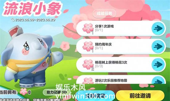 6月9日至6月29日,完成任务收集桃花,【流浪小象哆哆】外观免费获取!