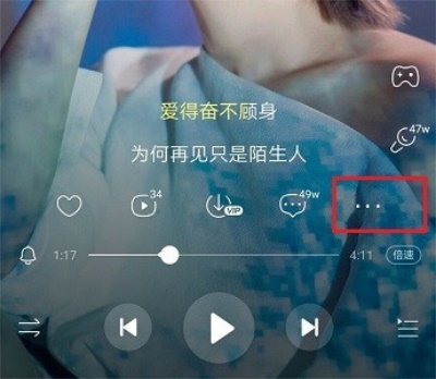 首先,用户选择好一首歌曲进入到播放的页面的时候可以选择底部“...”的更多菜单,点开之后杨湖就会看到平台为用户提供的更多功能,比如查看歌手、歌曲信息、设为皮肤、歌词设置和设为铃声。
