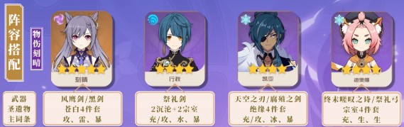 该阵容因为需要保证敌人一直处于冻结状态才舒适,所以刻晴基本不怎么使用Q,所以,可以携带追忆4件套,伤害加成与苍白4件套一样的。