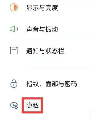 在手机上打开设置,在设置界面里,点击进入隐私界面。