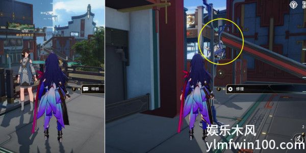 2、接着玩家需要找到梓桥对话,之后去往下图位置修理机巧鸟;