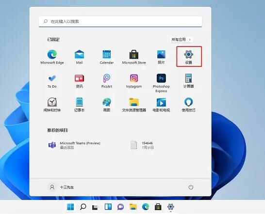 1.选择任务栏上的开始图标,接着单击显示应用程序中的打开设置。