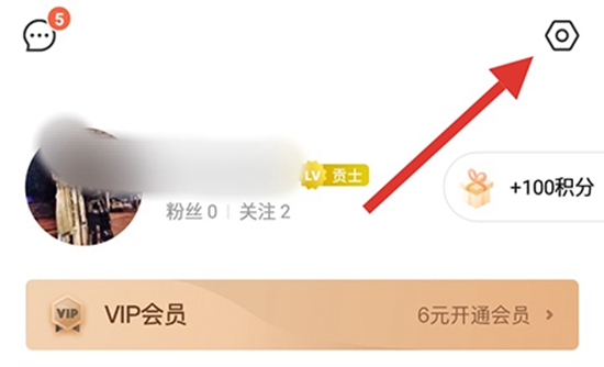 2、在个人中心的右上角找到设置按钮,点击进入软件设置页面;