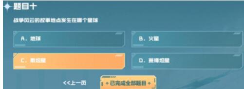 cf手游战垒驾照考试第十题答案是什么?相信大家小时候都玩过这么一款枪战游戏吧,那就是CF,现如今又推出了cf手游。他在保留了端游的核心玩法和角色场景设定外,又增加了手游独有的模式和操作特色。在游戏内尽可能的击杀多的人来获得更高的分数,拿出最强的火力输出成为战场中那个唯一活下来的人。cf手游战垒驾照考试最后一题是战争风云的故事是其中一个剧情任务,有很多小伙伴还不知道这个故事发生在哪个星球。其实这道题还是很容易选出答案的,只需稍加了解就能答出。不清楚答案也没关系,可以多看看悠悠小编在下面分享的攻略,希望可以帮助到你们。