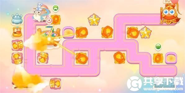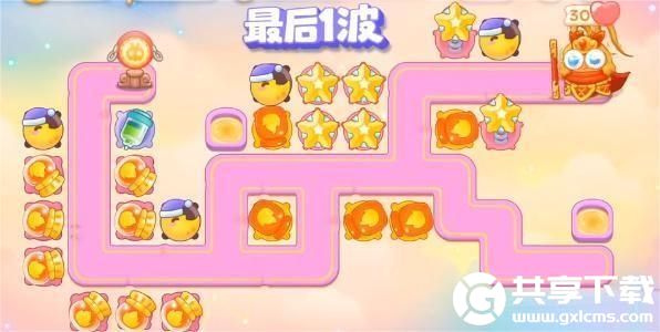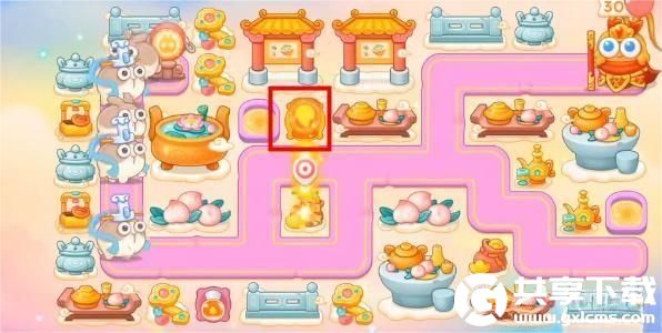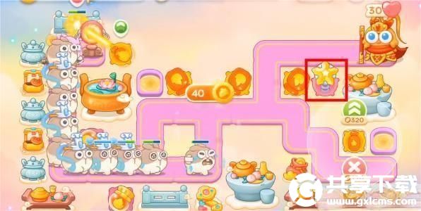 4、在下图位置需要今早建造一个星星炮塔,用来对付漂浮的兔子,先升到满级。