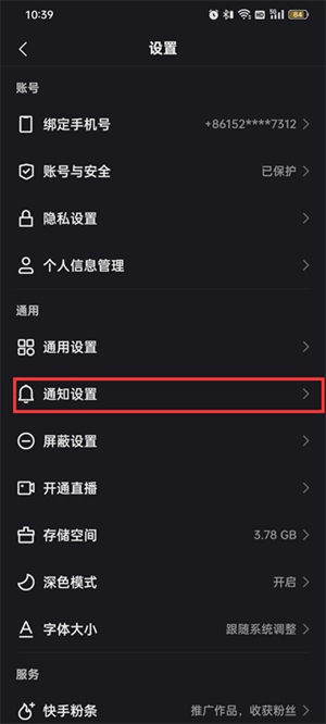 1.首先打开快手软件,来到快手页面之后点击左上角的【三横】图标,然后在当前的页面点击【设置】,进入到设置的页面之后点击【通知设置】;