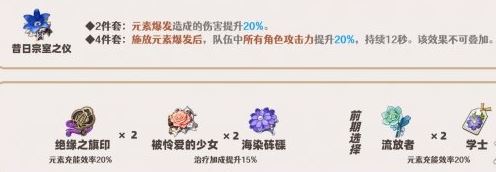 ①.昔日宗室之仪4件更多是配合辅助队伍其他以“攻击力”为基础属性的角色,队内仅1名角色使用即可。
