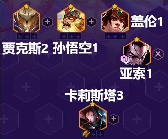 阵容组成:贾克斯、孙悟空、盖伦、亚索、卡莉斯塔(需要亚索或者卡莉斯塔是决斗天选)