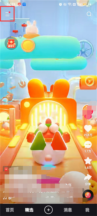 1.首先打开快手软件,来到快手页面之后点击左上角的【三横】图标;