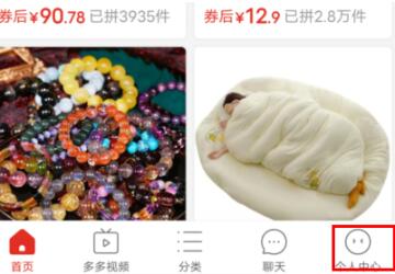 1.首先打开拼多多进入到首页之后点击右下角的【个人中心】;