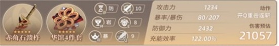 当荒泷一斗使用【螭骨剑】带【华馆四件套】时,毕业面板为: